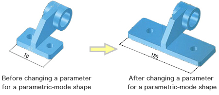 The parametric mode enables users to change in design as well as design standard parts that have various nominal dimensions and design on the basis of the reusable parts of existing models.