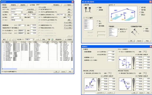 There are a wide variety of commands for creating NC data such as the commands for: adjusting feeding speed through the use of approximate arc and inclination of corner; dividing NC data mainly through the use of cutting length and file size; and outputting NC Data in the form of main program or sub program.