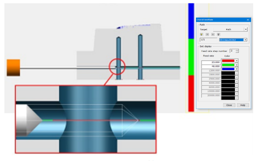 By automatically detecting the intersection of holed shapes such as water pipes and instructing the priority order of the shafts to be machined, the feed rate of the crossing section when drilling holes later can be reduced.