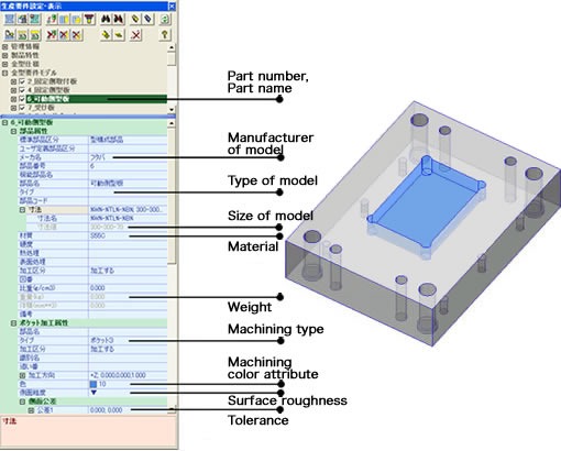 This tool supports users to convey and confirm CAD attribute data mainly of 3D models. It has not only the basic capabilities such as of measurement, but also the capability of confirming CAD attribute data such as design information and CAM information (under development). CADmeister-LITE enables easy understandings of shapes and intentions of designs and machining during the 3D model phases such as of design, CAM and machining. Eventually, this tool enables a reduction of costs and errors.