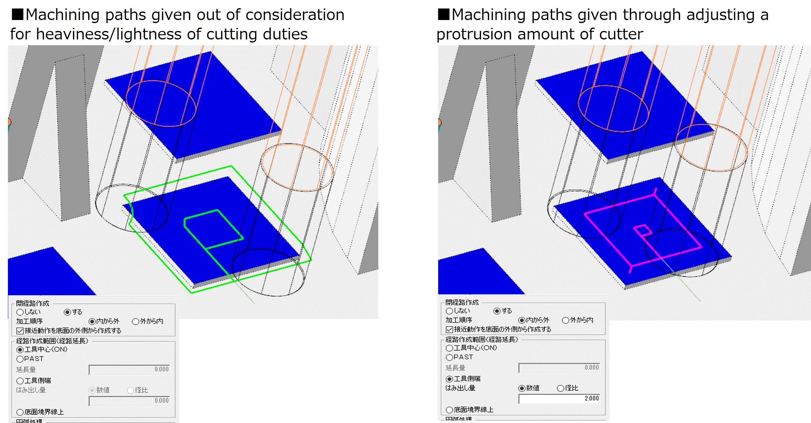 The System also creates paths for cutters to cut into areas out of consideration for heaviness/lightness of cutting duties. Also, it enables paths for a cutting tool to cut with the least possibility of colliding into peripheral shapes and without leaving any shapes uncut through setting and adjusting a Protrude Value of cutter.