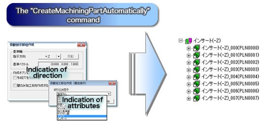 The “ConvertMachiningFeature” command can automatically add cutting attributes suitable for cutting methods in coordination with Path Computation in the subsequent processes.
