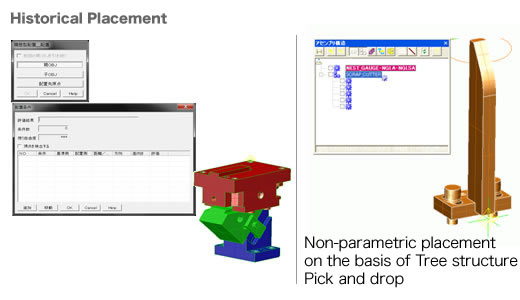 Standard parts and constituent parts such as Guides and U grooves can be placed by trial-and-error attempts.