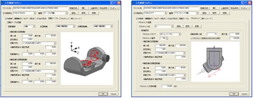 Post Settings enable various types of settings that match individual machines. They include the settings such as NC data output forms and tool replacement instructions. Post Settings support the settings for a 5 fixed-axis device by executing the commands for: revolving a table and machining inclined surfaces, replacing and revolving an accessory for angle adjustment (referred to as an ‘Attachment’), and converting 3D coordinates.