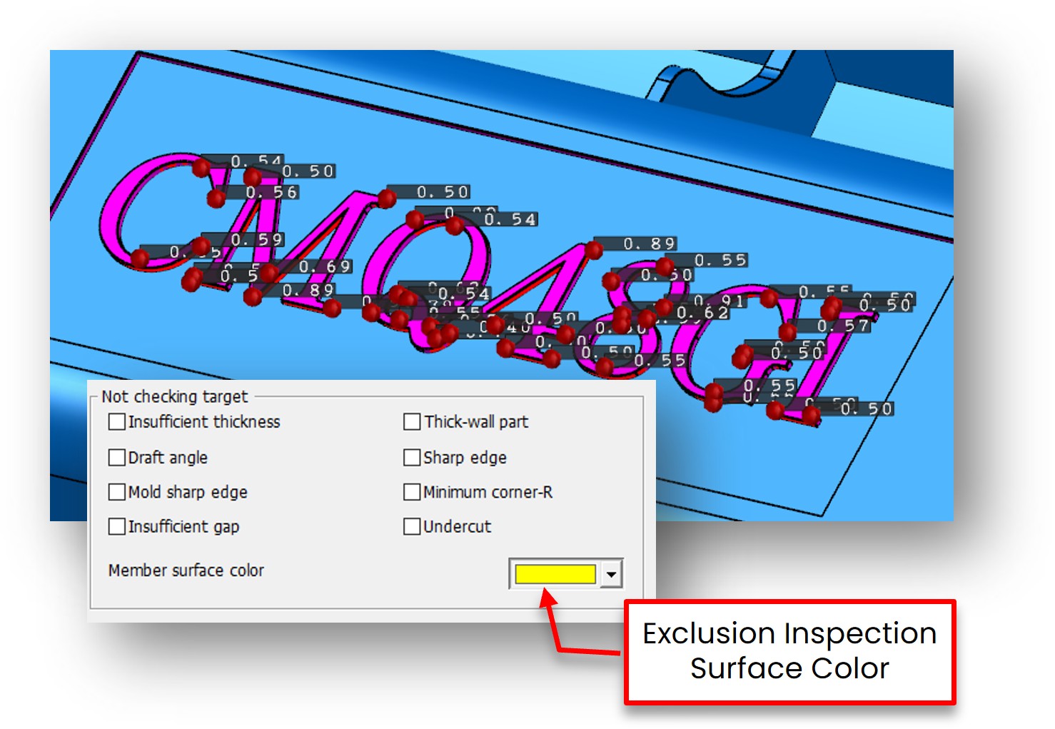 Filtering settings for inspection exclusion surfaces Balloon display of measured values