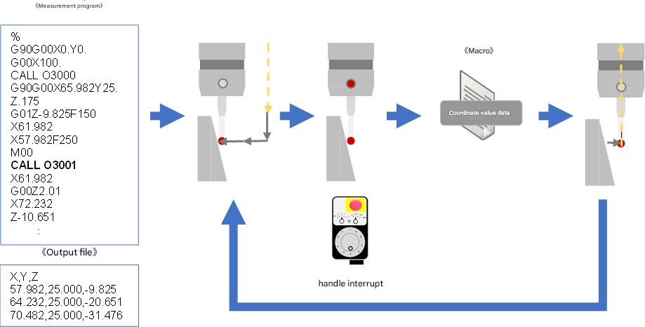 handle of the processing machine allows macro output of coordinate values to a text file.