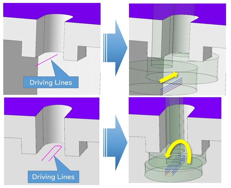The “ConvertMachiningFeature” command sets Driving Lines that constitute basic forms of path, and creates paths for linear motions and U-letter motions based upon the Driving Lines.