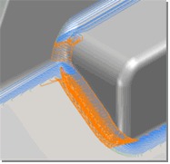 This command can automatically detect any portions that have been left uncut in the previous operation, and create paths to make corners along the ridges. A highly efficient operation for making corners is enabled by this command which is capable of creating paths along contours on inclined surfaces and paths on gentle slope surfaces.- Other Methods of Machining