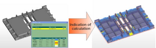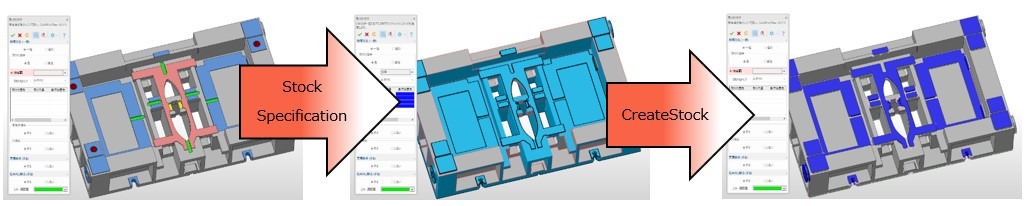 There is a feature for creating bolsters which keep the strength of material when machining the external side. Also, there is a simple NC verification function that automatically removes the portions where interferences are caused by a tool holder.