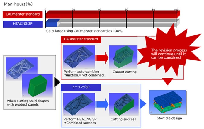By simply indicating the 3D model, the software automatically searches for overlapping surfaces, surface separation, and missing surfaces, and corrects and combines them.