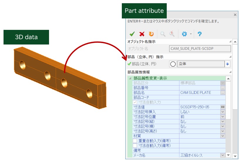 Also, drawings can be checked by executing the commands of interference test and die structure verification. Furthermore, CAM system can be coordinated through the use of machining features.