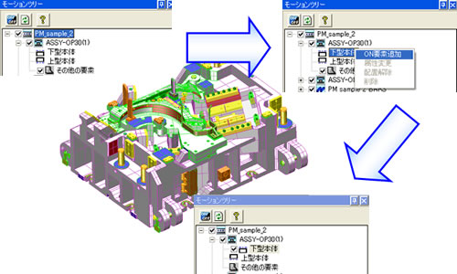 PRESS-MOTION detects the locations where dynamic interferences are caused among parts when they are placed in a die and while they are transferred.